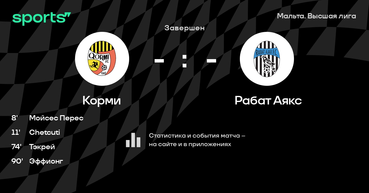Султана - Тэкрей, Bondin, Саммут - Cassar, Бильбао, Cassar, Gauci, Chetcuti - Эффионг, Мойсес ПересЗапасные: Фарруджа, Pisani, Bartolo, Каруана, Zammit, Pirotta, Греч