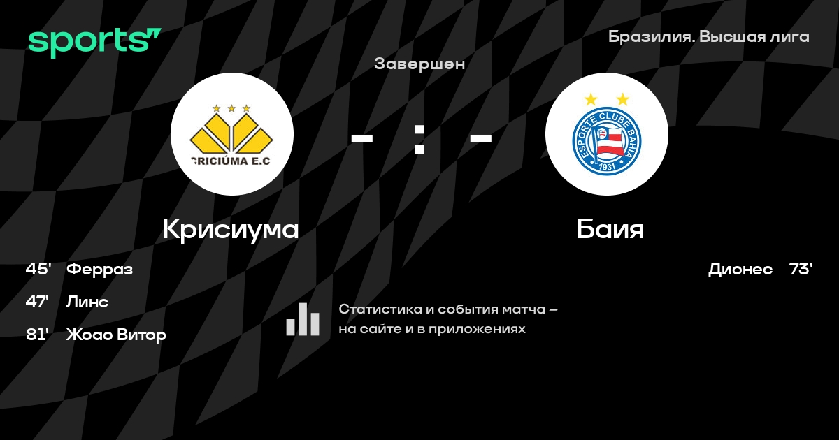 Ломба - Жуссандро, Тити, Донато, Мадсон - Фаэл, Элдер, Мело, Маркиньос Габриэл, Ридер Матос - ФернандаоЗапасные: Сантос, Нето, Фонсека, Аду, Торо, Дионес, Обина