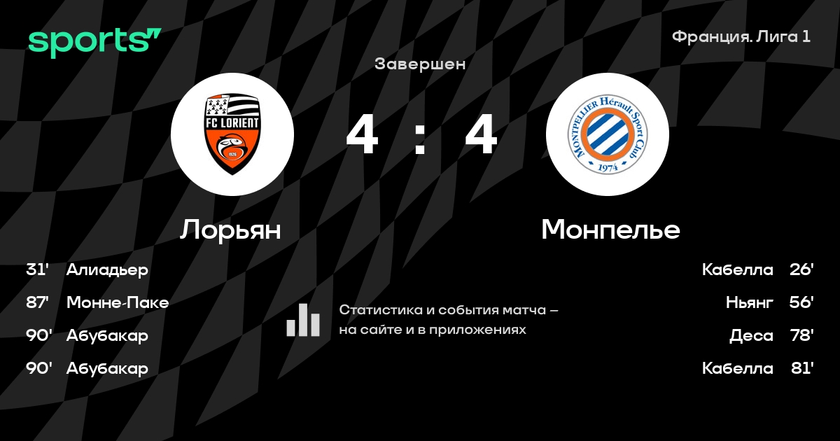 Чемпионат Франции. 14-й тур. «Монпелье» переиграл «Лилль», «Ницца» победила «Тулузу», «Сент-Этьен» уступил «Лорьену»