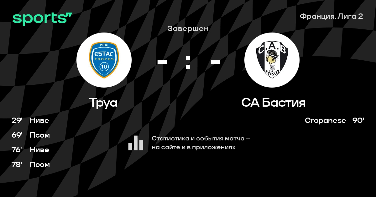 Lombard - Монфре, Truchet, Oswald, Camara - Ндиайе, Ассана, Marty, Cropanese, Arnoux - PastorelliЗапасные: Philippon, Фожо, Grimaldi, Le Mat, Mandrichi