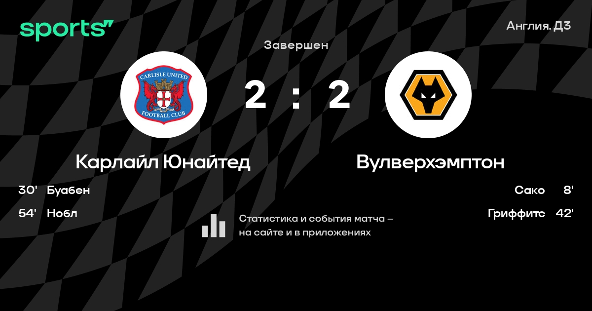 Трансляция Карлайл Юнайтед - Вулверхэмптон