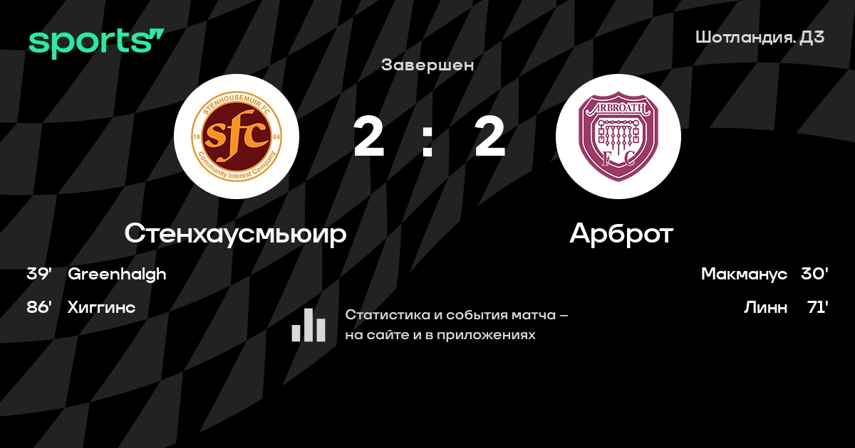 Smith - Девлин, Lawson, McKinlay, Грисен - Greenhalgh, Watt, Hodge - Lynch, Lee Smith, ХиггинсЗапасные: Shaw, Dickson, Rowson, Duncan, Faulds, Douglas, McNeil