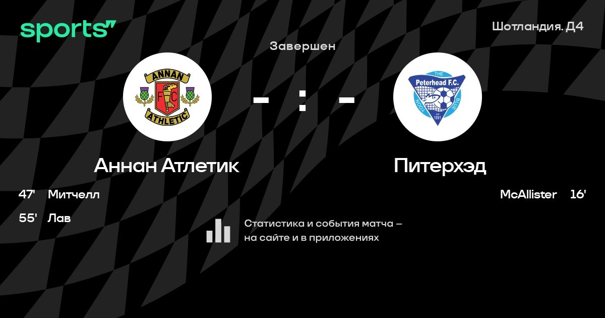 Артур - McNiff, Watson, Swinglehurst, Black, Chisholm - Митчелл, Тодд - Лав, Henderson, MacKayЗапасные: Mitchell, Bradley, Хопкерк, Davidson, Brannan, Moffat, Caldwell