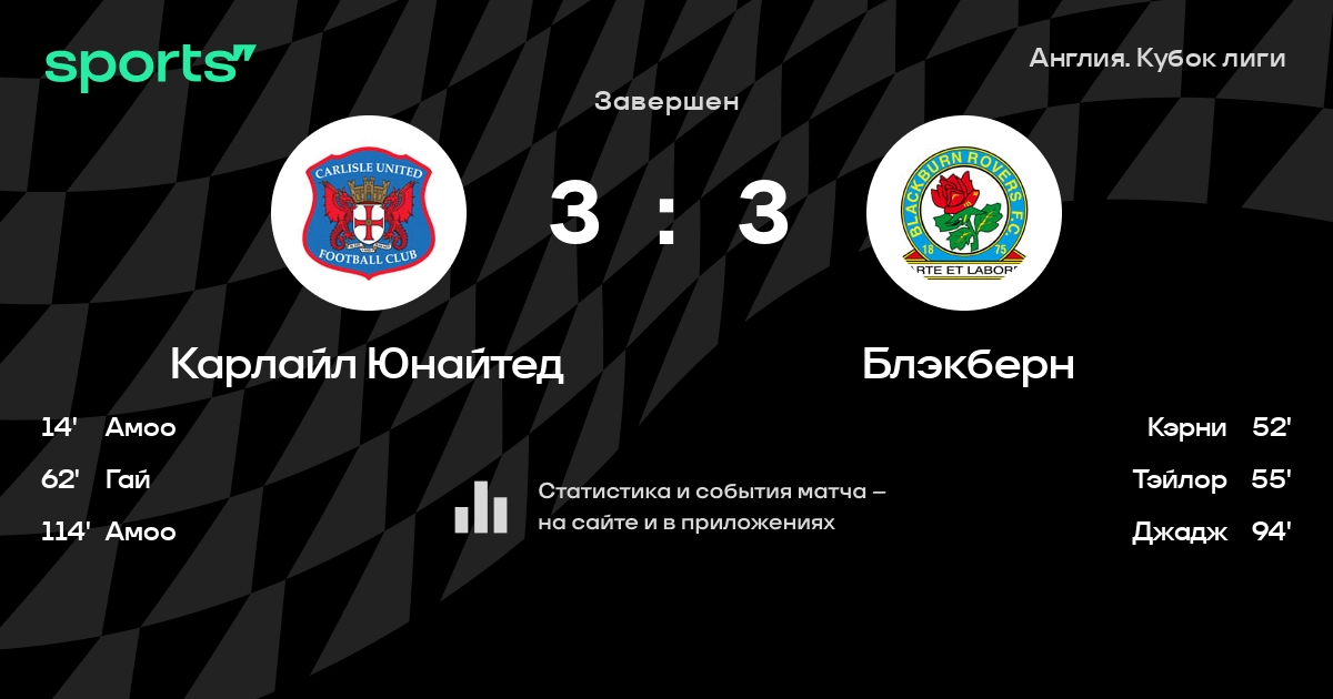 Карлайл Юнайтед - Блэкберн: статистика матча
