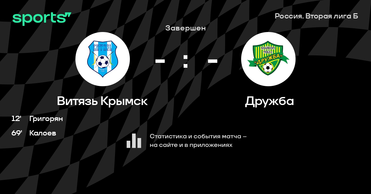 Трансляция Витязь Крымск - Дружба