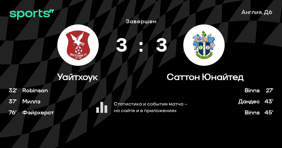 Трансляция Уайтхоук - Саттон Юнайтед