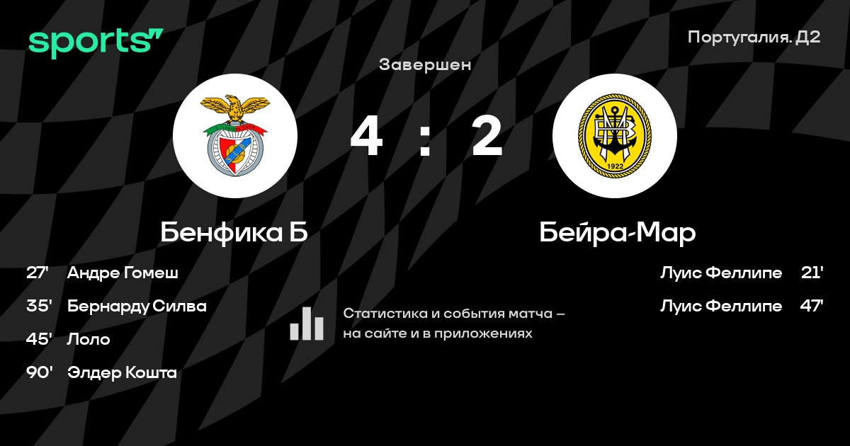 Регу - Луис Густаво, Жайме, Мартинш - Барбоза, Андре Соуза, Рикарду Диаш, Андре Ногейра, Элдер Тавареш - Тиагу Синтра, Луис ФеллипеЗапасные: Reis Lopes, Офори, Угу Лопеш, Нану, Сержио, Пите