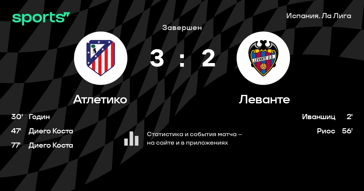 Куртуа - Филипе Луис, Годин, Миранда, Хуанфран - Туран, Габи, Тиагу, Коке - Вилья, Диего КостаЗапасные: Арансубия, Алдервейрелд, Манкильо, Гилавоги, Рауль Гарсия, Родригес