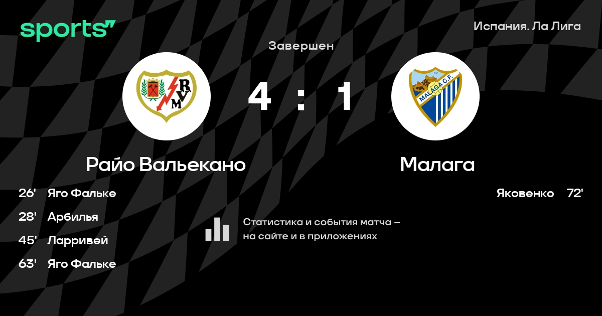 Райо Вальекано – Малага: Райо Вальекано забивает в 6 из 8 последних матчей против этого соперника