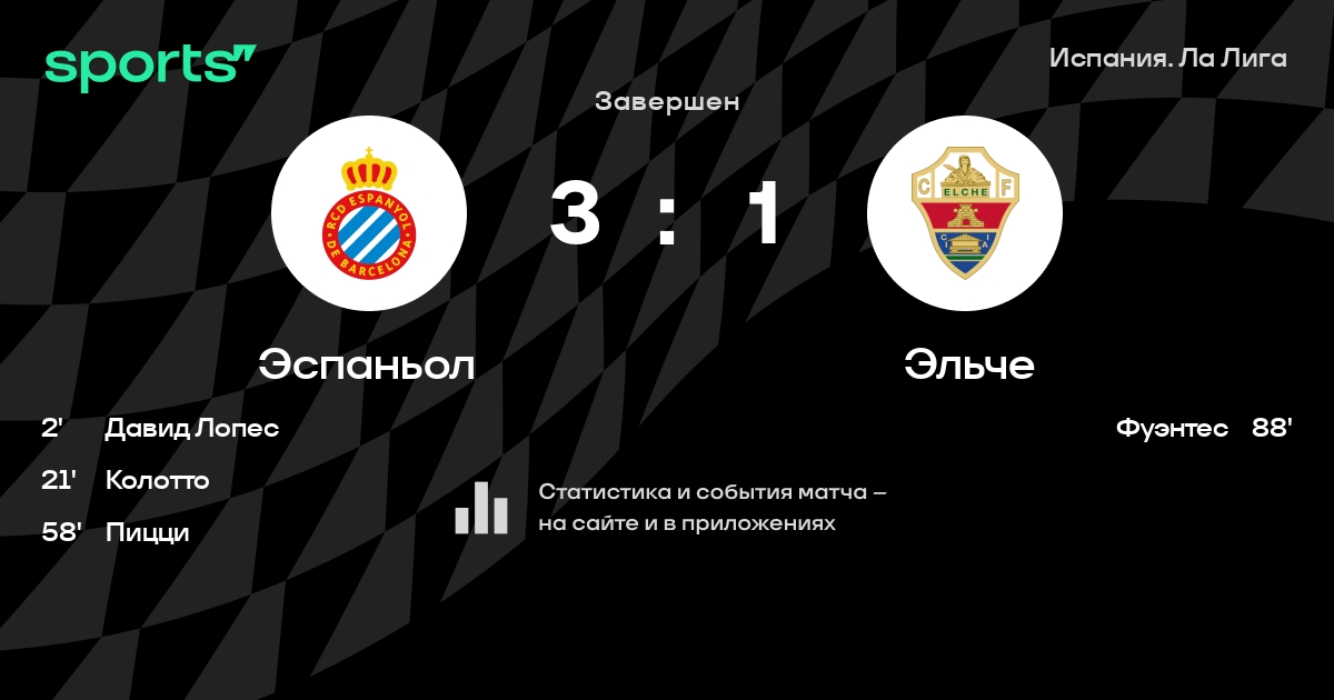 Касилья - Фуэнтес, Морено, Колотто, Хави Лопес - Симау, Пицци, Стуани, Давид Лопес, Санчес - ГарсияЗапасные: Парреньо, Родригес, Альварес, Сидней, Лансароте, Алекс Фернандес, Абраам