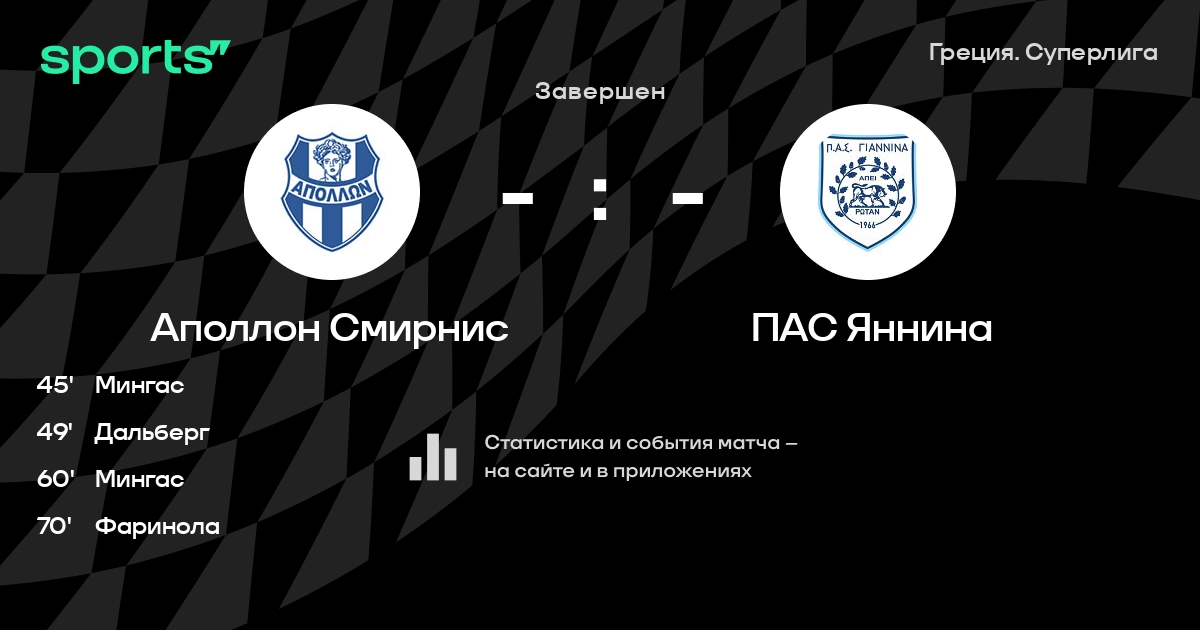 Аполлон Смирнис – ПАС Яннина: коэффициенты