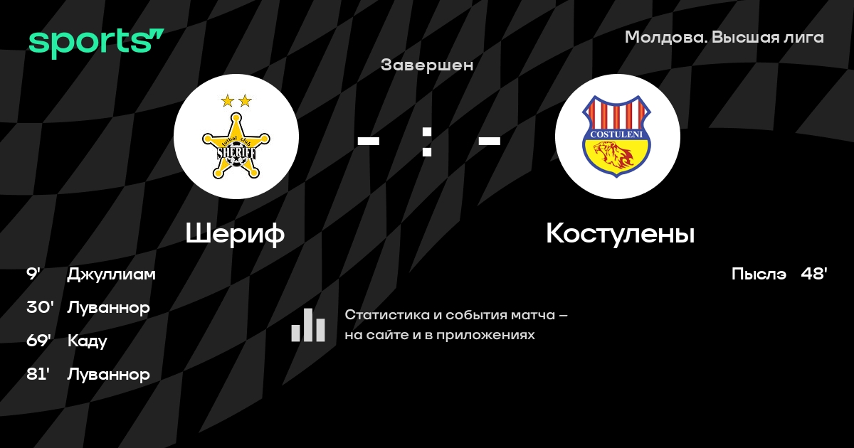 Шериф - Костулены: статистика матча от 25 августа 2013