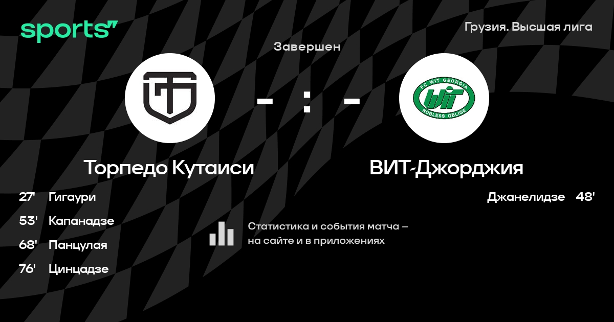 Торпедо Кутаиси – ВИТ-Джорджия: коэффициенты