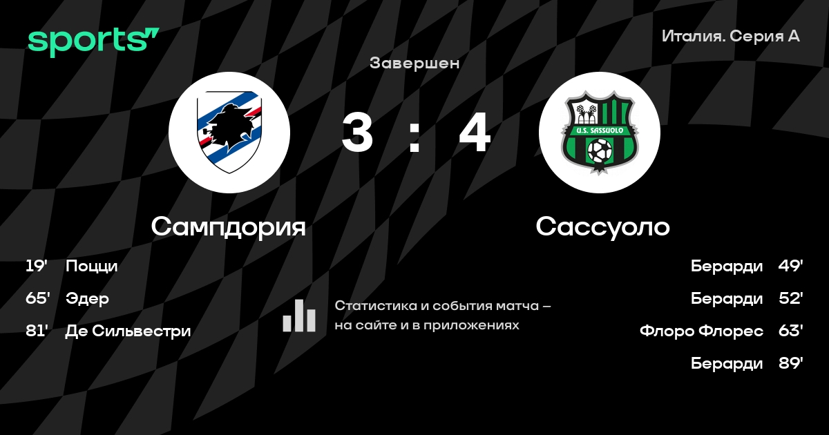 Анжело - Коста, Мустафи, Гастальделло - Гавацци, Генцоглу, Обианг, Крстичич, Де Сильвестри - Эдер, ПоцциЗапасные: Фьорилло, Берарди, Форназье, Родригес, Паломбо, Бьярнасон, Ренан, Вшолек, Сориано, Эрамо, Петанья