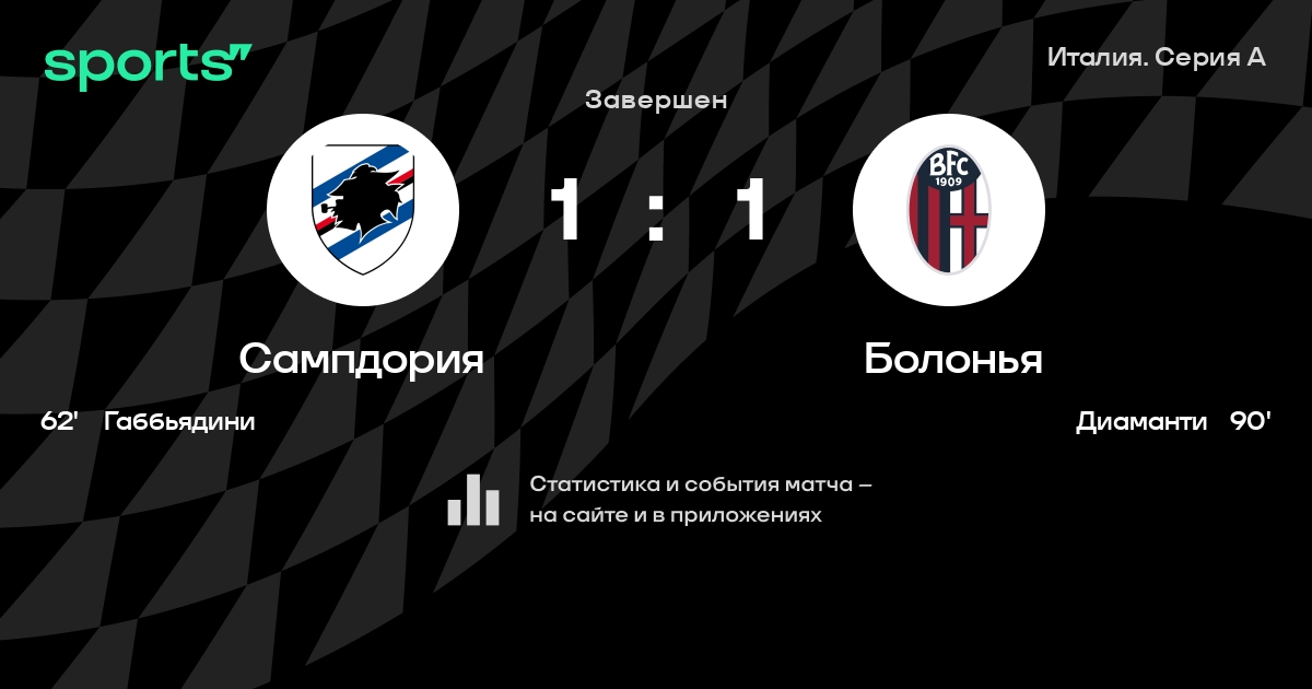 Анжело - Коста, Гастальделло, Мустафи, Де Сильвестри - Обианг, Паломбо, Сориано, Габбьядини, Крстичич - ЭдерЗапасные: Фьорилло, Фальконе, Берарди, Форназье, Саламон, Родригес, Бьярнасон, Ренан, Вшолек, Поцци, Сансоне