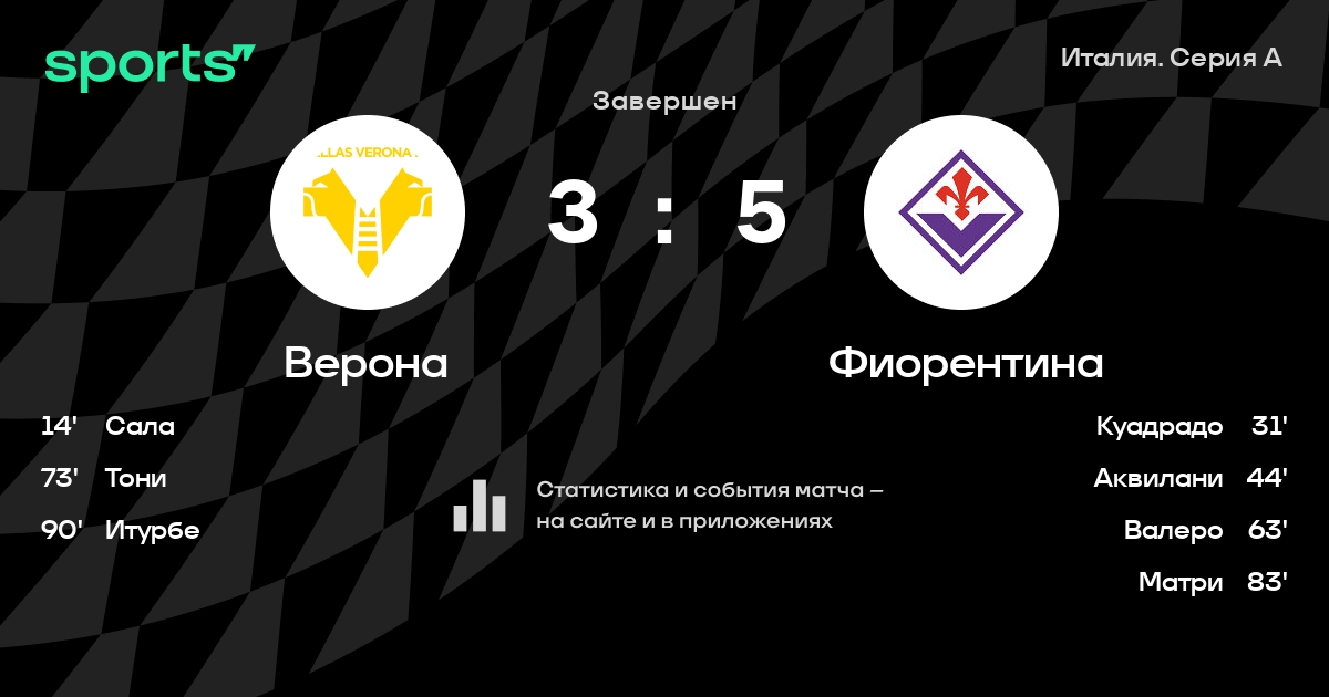 Нето - Паскуаль, Родригес, Савич, Томович - Валеро, Ридер Матос, Иличич, Писарро, Аквилани - КуадрадоЗапасные: Лупателли, Розати, Ронкалья, Варгас, Диаките, Хоакин, Вольски, Андерсон, Бакич, Матри