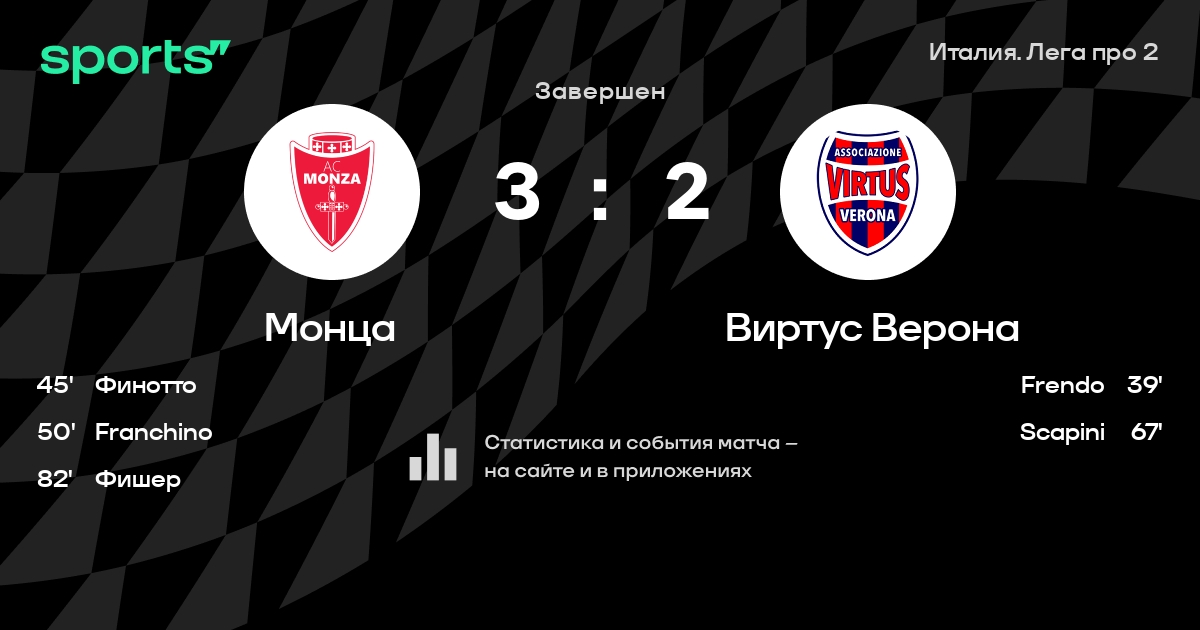 Палеари - Trainotti, Peroni, Cosner, Frendo - Lechtaler, Santuari, Allegrini, Mazzetto - Odogwu, ScapiniЗапасные: Pavanello, Bolcato, Rizzi, Guzzo, Oviahon, Менса, Lallo