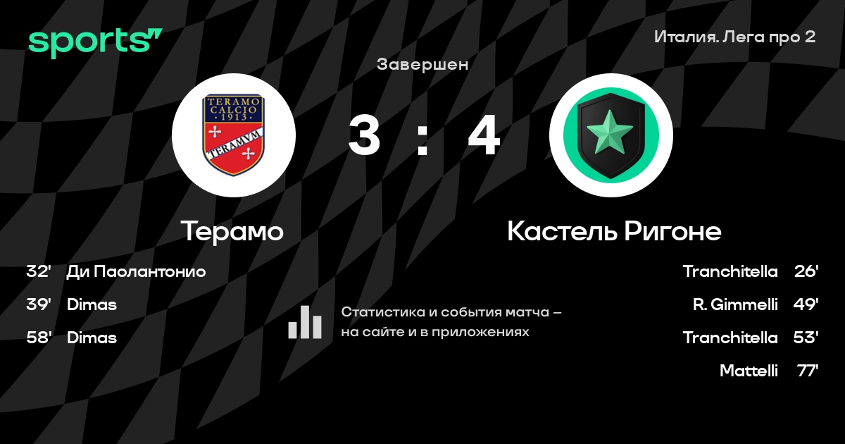 Серрайокко - Ferrani, Грегорио, Scipioni, Speranza - Arcuri, Ди Паолантонио, Cenciarelli - Gonçalves de Oliveira, Petrella, ГаетаЗапасные: Нардуццо, Caidi, Sassano, Pacini, Казолла, Patierno, Bernardo