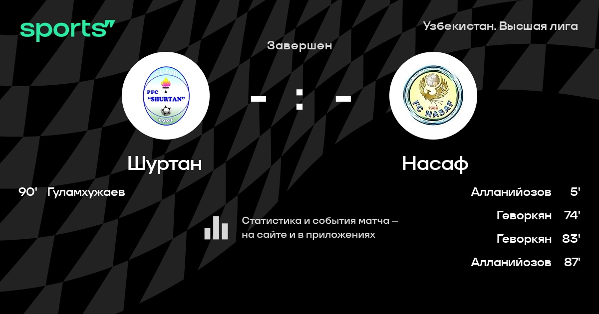 Суюнов - Сайфиев, Кораев, Азамов, Каримов - Dadaboyev, Каримов, Юнусов - Геворкян, Алланийозов, ШомуродовЗапасные: Наумов, Abdurazzokov, Бердимуродов, Шодмонов, Неъматов, Тураев, Абдуллаев