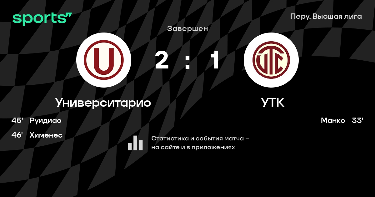 | 1 | Университарио | 44 | 22 | 76 | ||