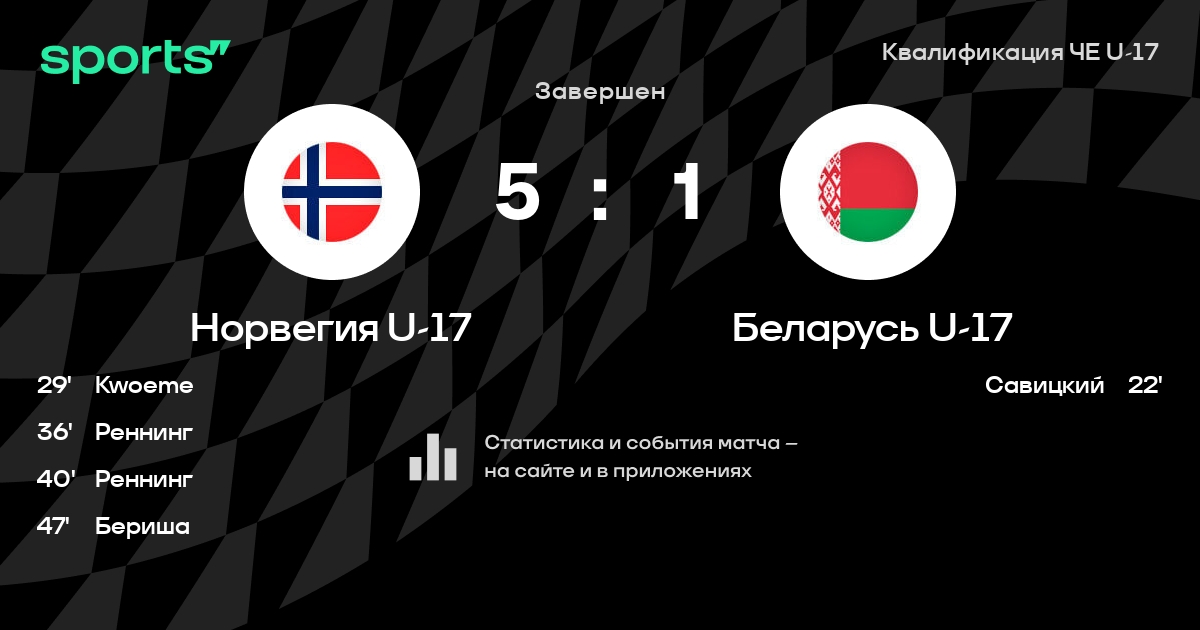 Трансляция Норвегия U-17 - Беларусь U-17