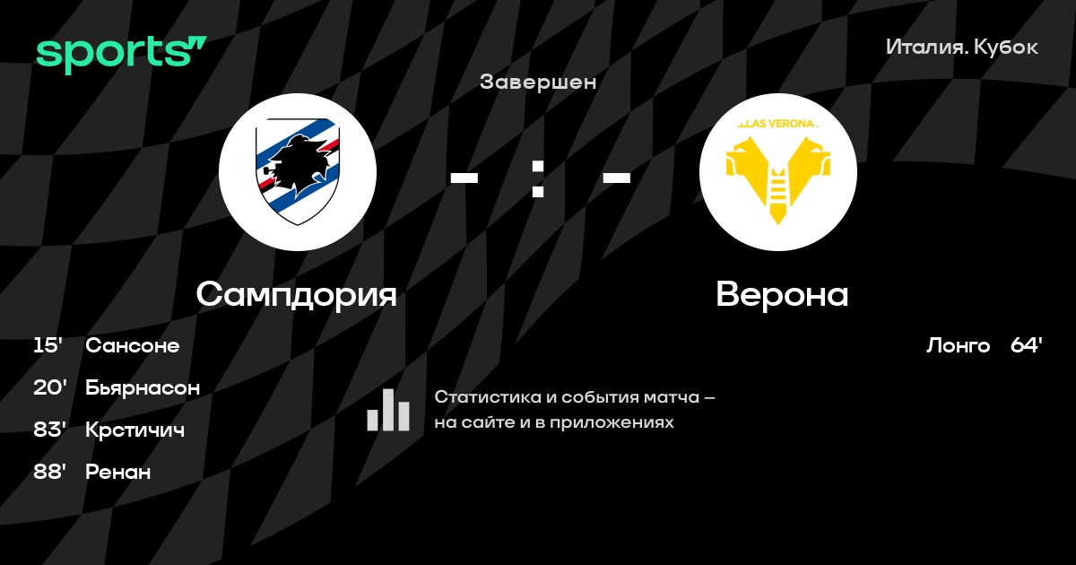 Кубок Италии. 4-й раунд. «Сампдория» разгромила «Верону» и другие результаты