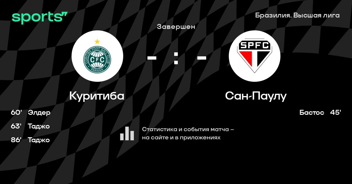 Чемпионат Бразилии. Куритиба - Сан-Паулу. 2:0, дубль Алекса де Соуза