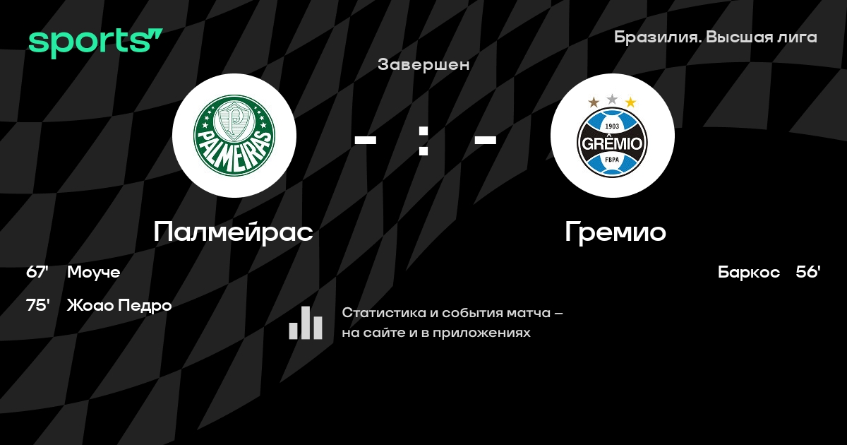Чемпионат Бразилии. 36-й тур. Гол Макси Лопеса помог «Гремио» победить «Палмейрас», мяч Роналдо не спас «Коринтианс» от поражения в игре с «Наутико»
