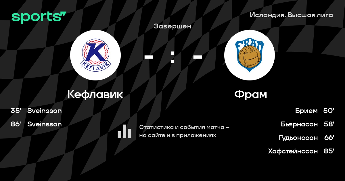 Сандквист - Jafetsson, Gudmundsson, Halldórsson - Магнуссон, Einarsson, Elísson, Matthíasson, Ljubicic - Оумарссон, SveinssonЗапасные: Ásgeirsson, Hilmarsson, Gudlaugsson, Unnarsson, Sigurðsson, Halldórsson, Saevarsson