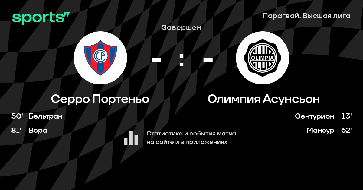 Трансляция Серро Портеньо - Олимпия Асунсьон