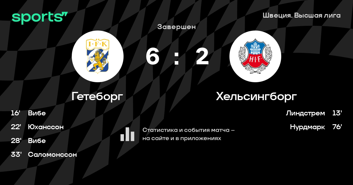 Саннберг - Аугустинссон, Бьерсмюр, Саломонссон, Йонссон - Малангу, Смедберг-Даленсе, Ларссон, Юханссон - Седер, ВибеЗапасные: Альвбоге, Сакриссон, Алланссон, Собраленсе, Боянич, Энгвалль, Мане