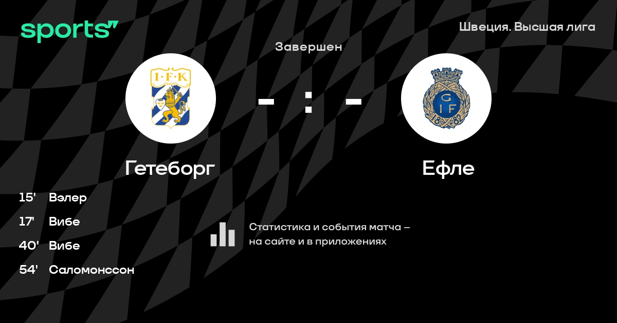 Альвбоге - Аугустинссон, Бьерсмюр, Саломонссон, Вэлер - Малангу, Рикс, Смедберг-Даленсе, Юханссон - Энгвалль, ВибеЗапасные: Саннберг, Сакриссон, Йонссон, Свенссон, Юханссон, Алланссон, Кальво