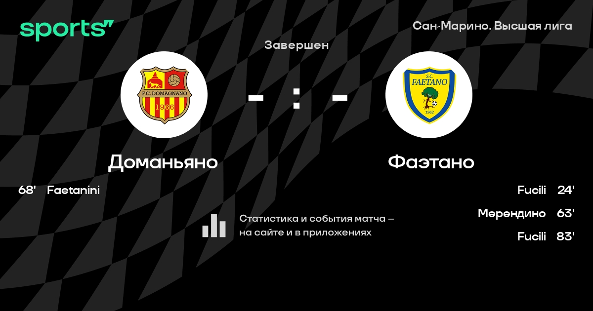 | 2 | Космос Сан-Марино | 20 | 12 | 2 | 6 | 44 | 26 | +18 | 38 | ||