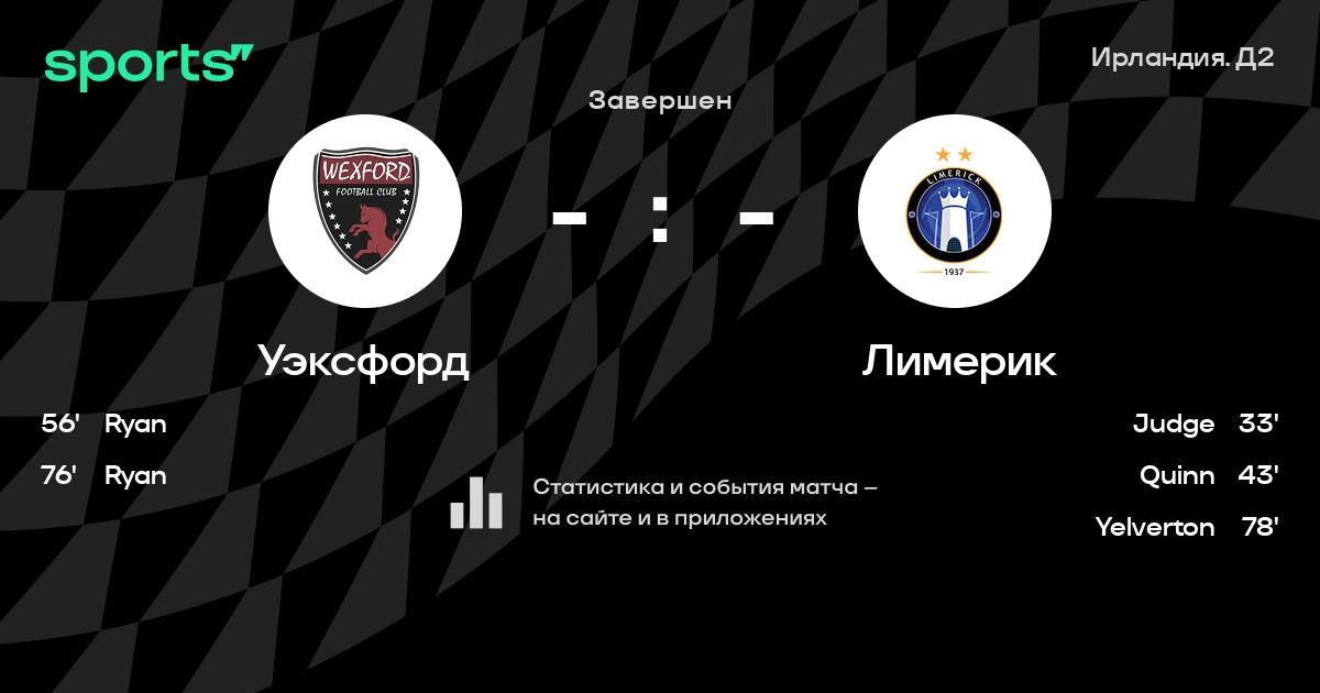 Holden - Malone, Nolan, Keogh - Yelverton, Broaders, Уолл - Kehoe, Walshe, Ryan, ФерлонгЗапасные: , Kinsella, Phelan, Vickers, Elmes, Mullen