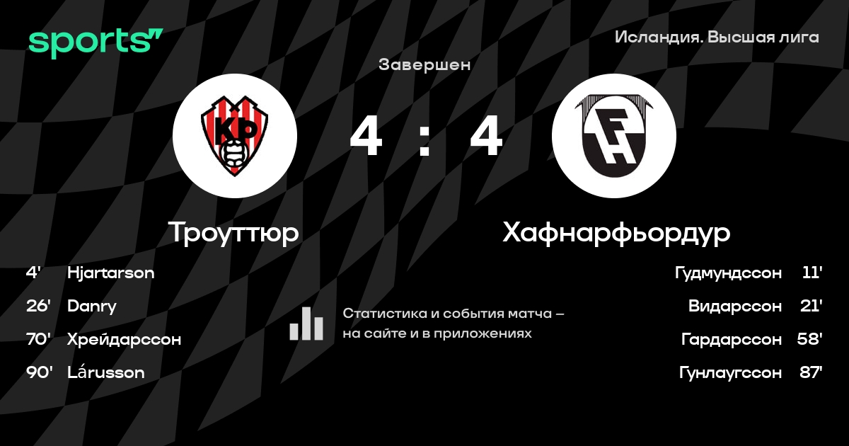 | 1 | Хафнарфьордур | 22 | 15 | 2 | 5 | 50 | 25 | +25 | 47 | ||