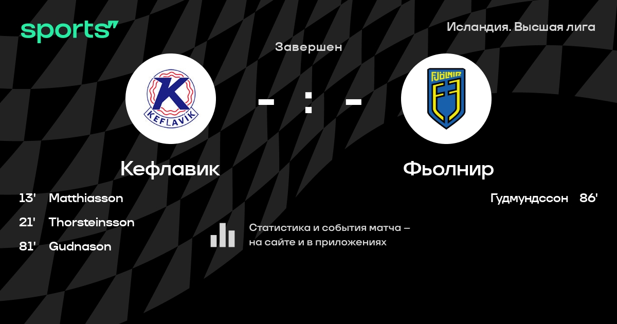 Jörgensen - Антониуссон, Gudmundsson, Sutej - Jörgensen, Einarsson, Adalsteinsson, Matthíasson, Самуэльсен - Sveinsson, Thorsteinsson