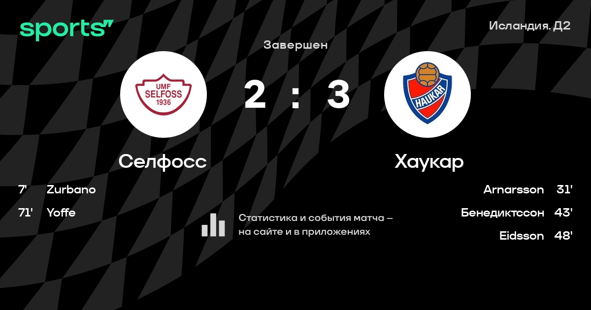 Сигурдарсон - Björnsson, Трастарсон, Сайварссон, Arnarsson, Emilsson, Брием - Бенедиктссон, Johannsson, Ingólfsson - EidssonЗапасные: Gunnarsson, Sindrason, Gudmnudsson, Gunnarsson, Паульссон, Adalgeirsson, Jóhannesson