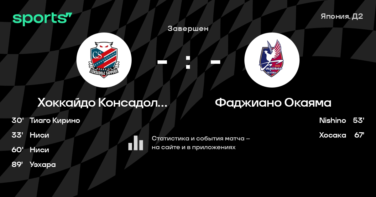 Хоккайдо Консадоле Саппоро - Фаджиано Окаяма: статистика матча