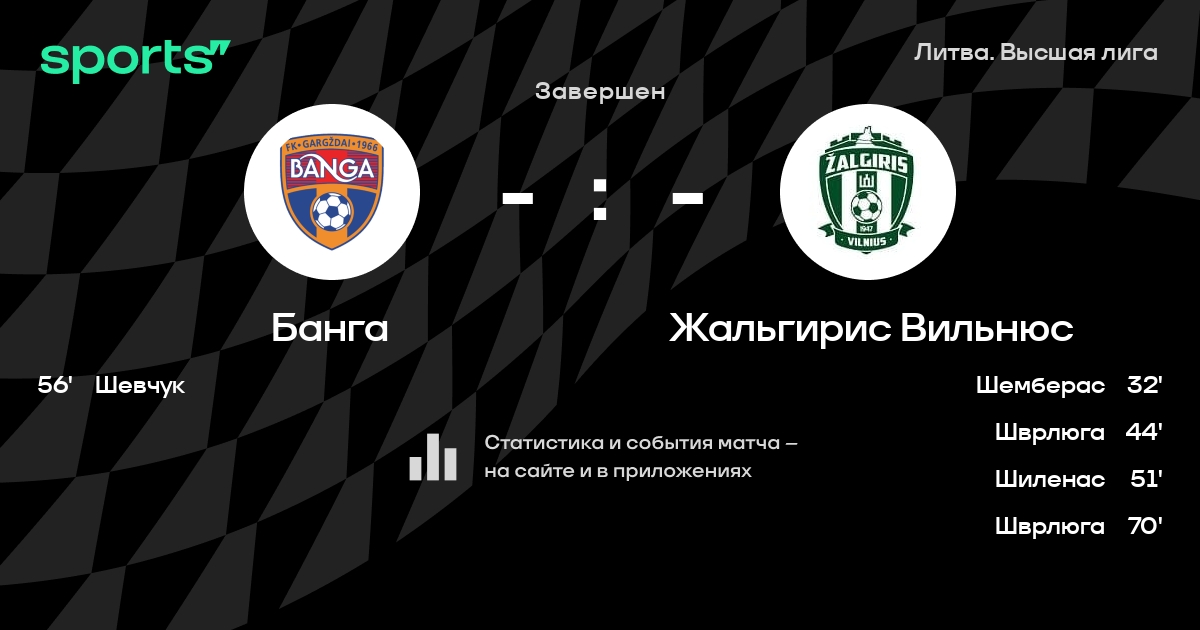 | 1 | Жальгирис Вильнюс | 36 | 25 | 9 | 2 | 92 | 17 | +75 | 84 | ||