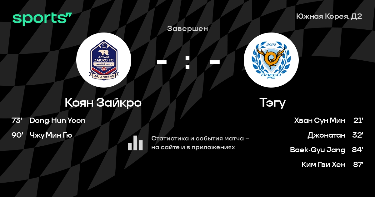 Коян Зайкро – Тэгу: Коян Зайкро забивает в 4 последних матчах против этого соперника