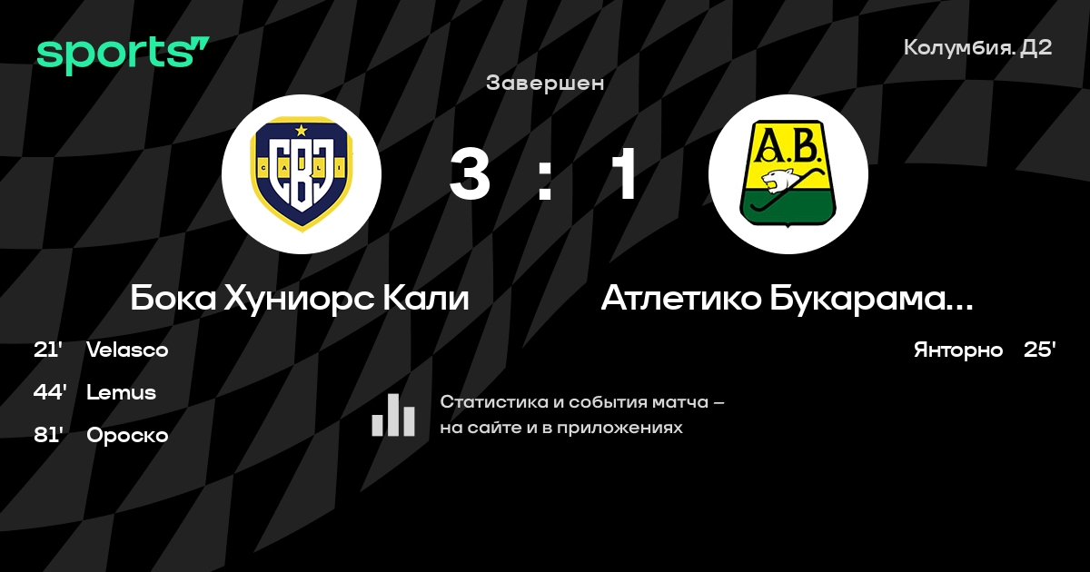 Трансляция Бока Хуниорс Кали - Атлетико Букараманга