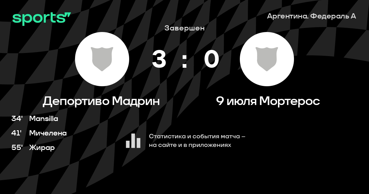 Трансляция Депортиво Мадрин - 9 июля Мортерос