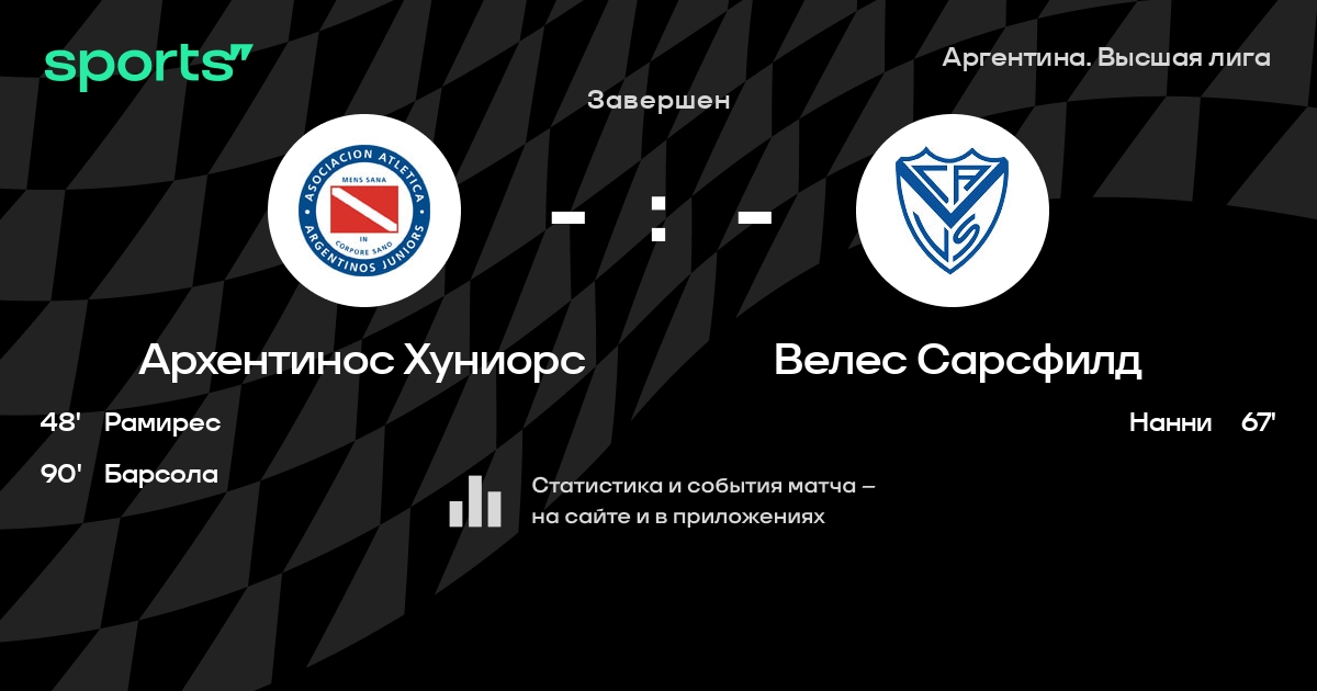 Трансляция Архентинос Хуниорс - Велес Сарсфилд
