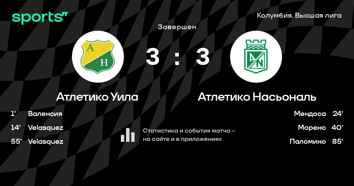 Трансляция Атлетико Уила - Атлетико Насьональ