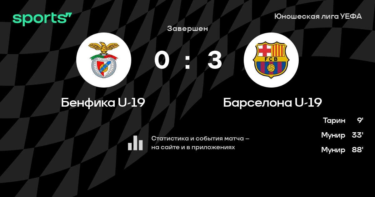 Трансляция Бенфика U-19 - Барселона U-19
