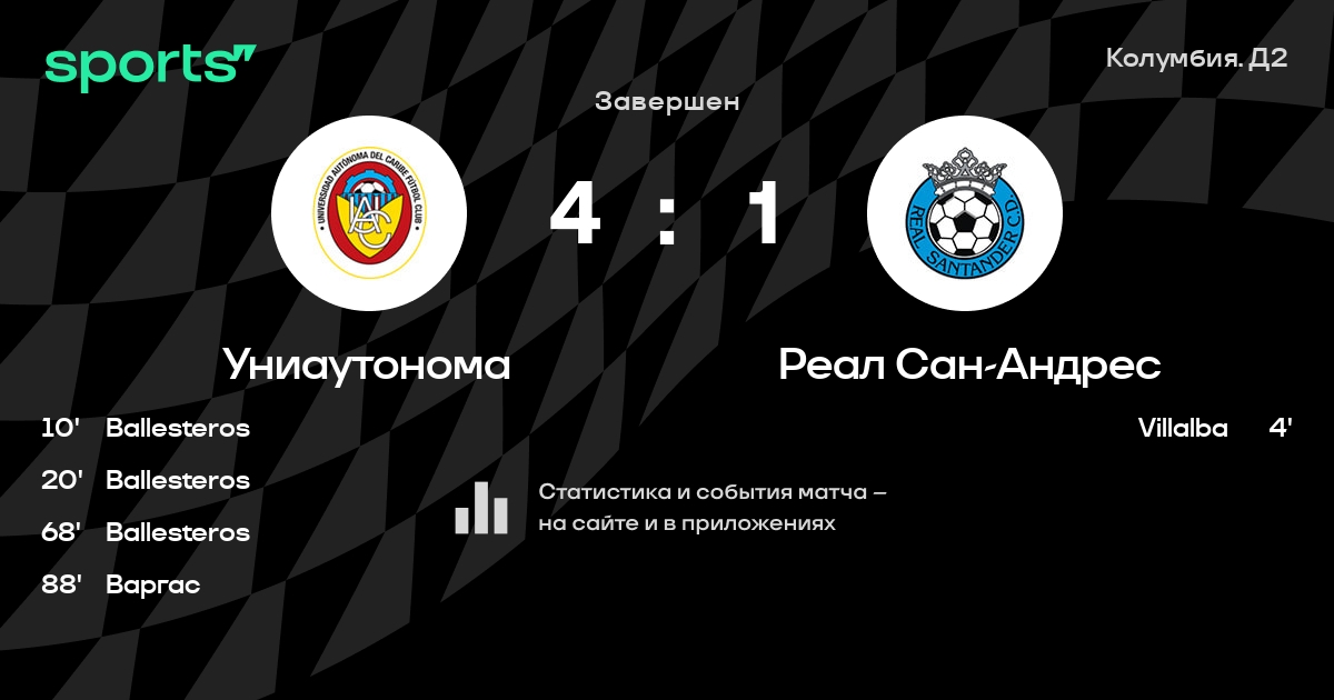 | 9 | Реал Сан-Андрес | 18 | 7 | 6 | 5 | 23 | 19 | +4 | 27 | ||