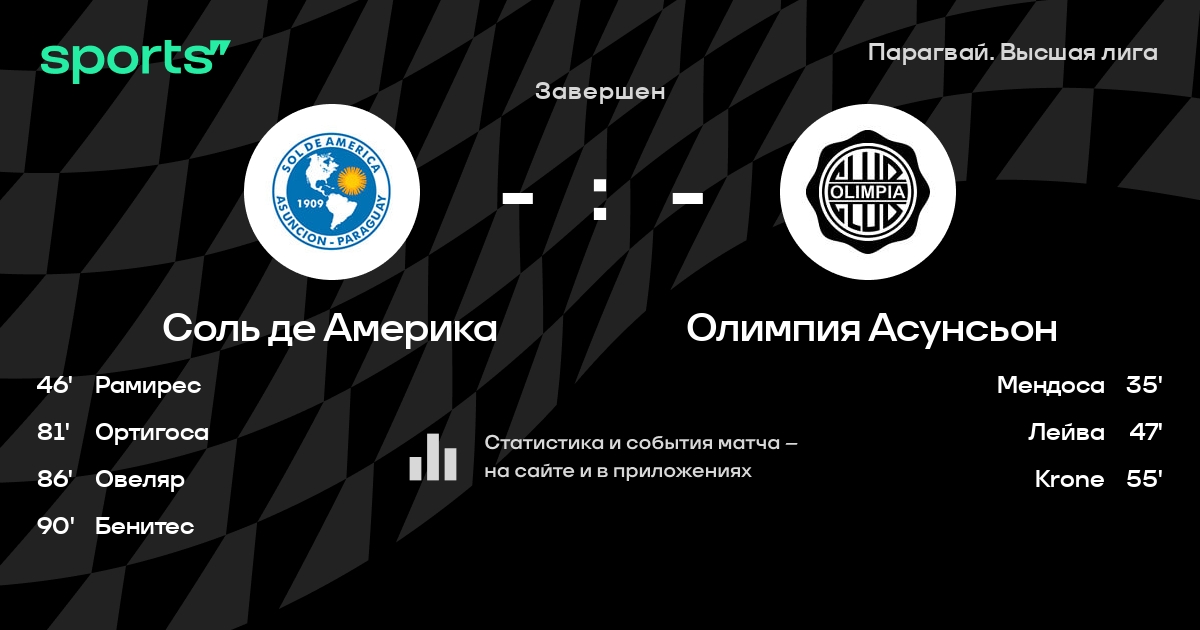 | 2 | Насьональ Асунсьон | 22 | 14 | 3 | 5 | 45 | 25 | +20 | 45 | ||