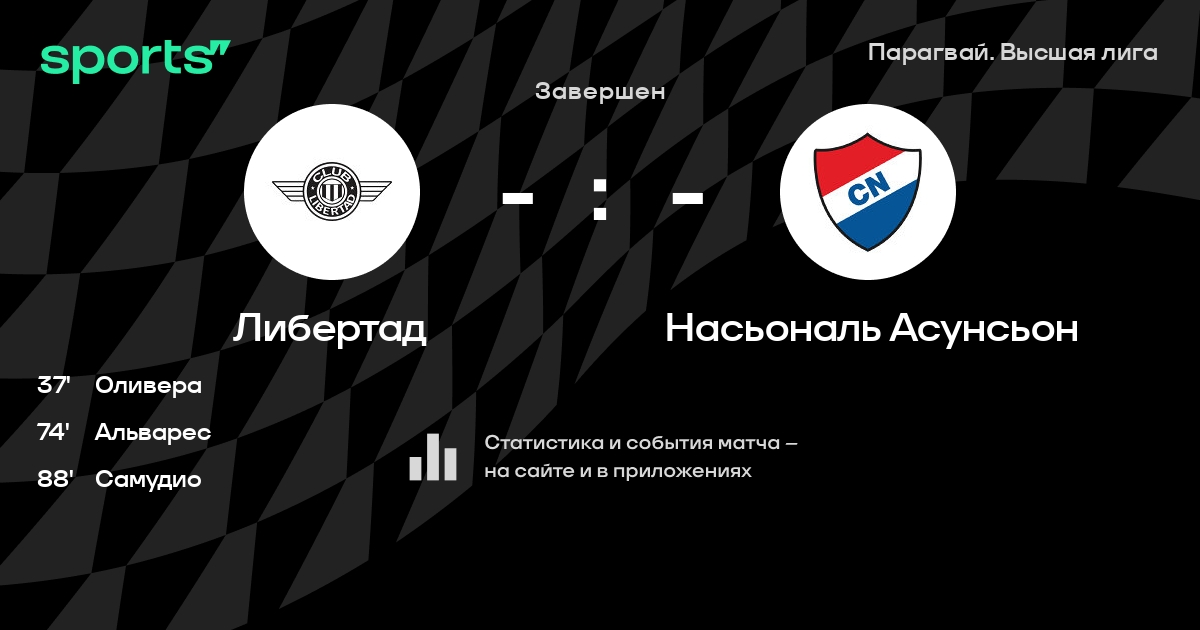 | 2 | Насьональ Асунсьон | 22 | 14 | 3 | 5 | 45 | 25 | +20 | 45 | ||