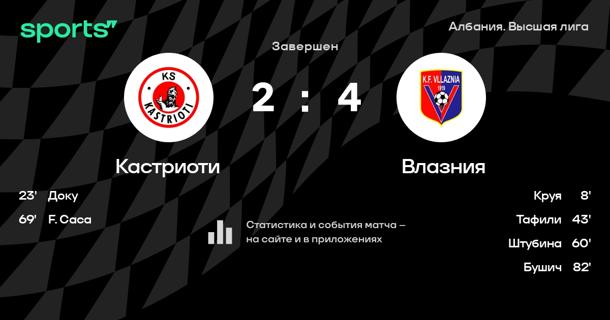 Kukrika - Денис Да Силва, Феррай, Доку, Шета, Джафа, Caca, Алеченву - Сефа, Çela - ПоповичЗапасные: Çali, Hoxha, Дая, Манука, Братич, Tepshi, Малинди