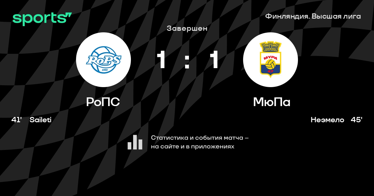 | 7 | Тампере Юнайтед | 26 | 9 | 9 | 8 | 41 | 34 | +7 | 36 | ||